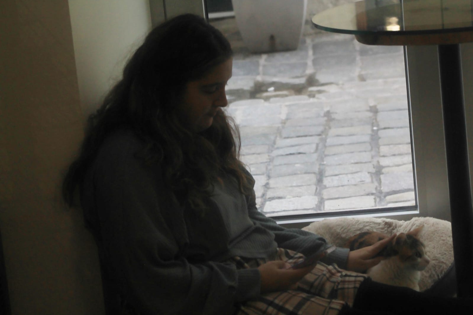 Die Katzen waren sehr freundlich mit den Leuten. Wir haben viele Fotos gemacht und Joana hat mit einer Katze gekuschelt.