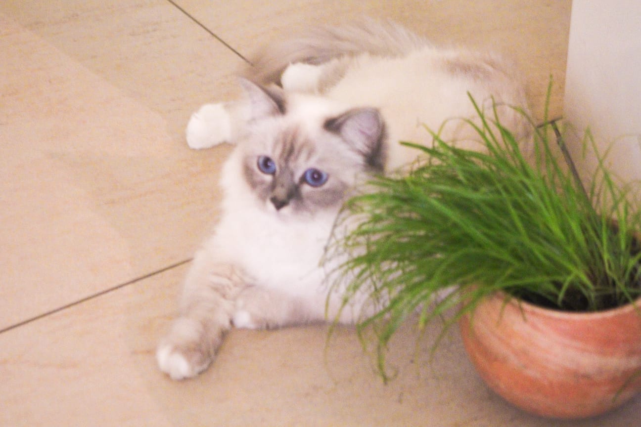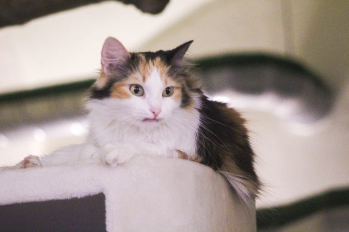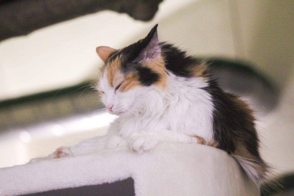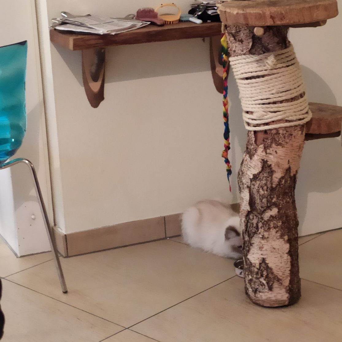 Es gibt dort 5 Katzen, viele von ihnen haben geschlafen. Eine Katze ist auf den Markus gesprungen und er hat sie dann gestreichelt.