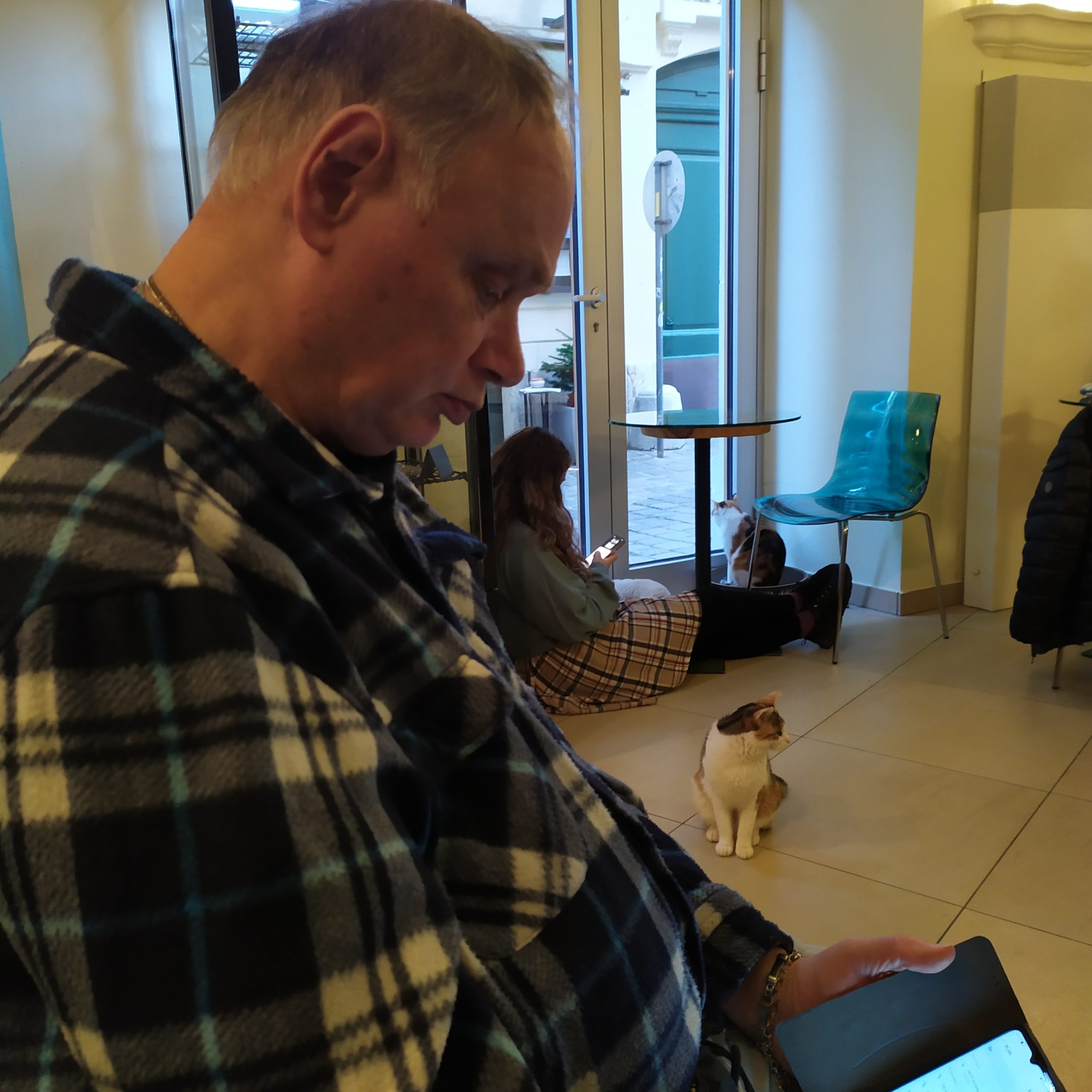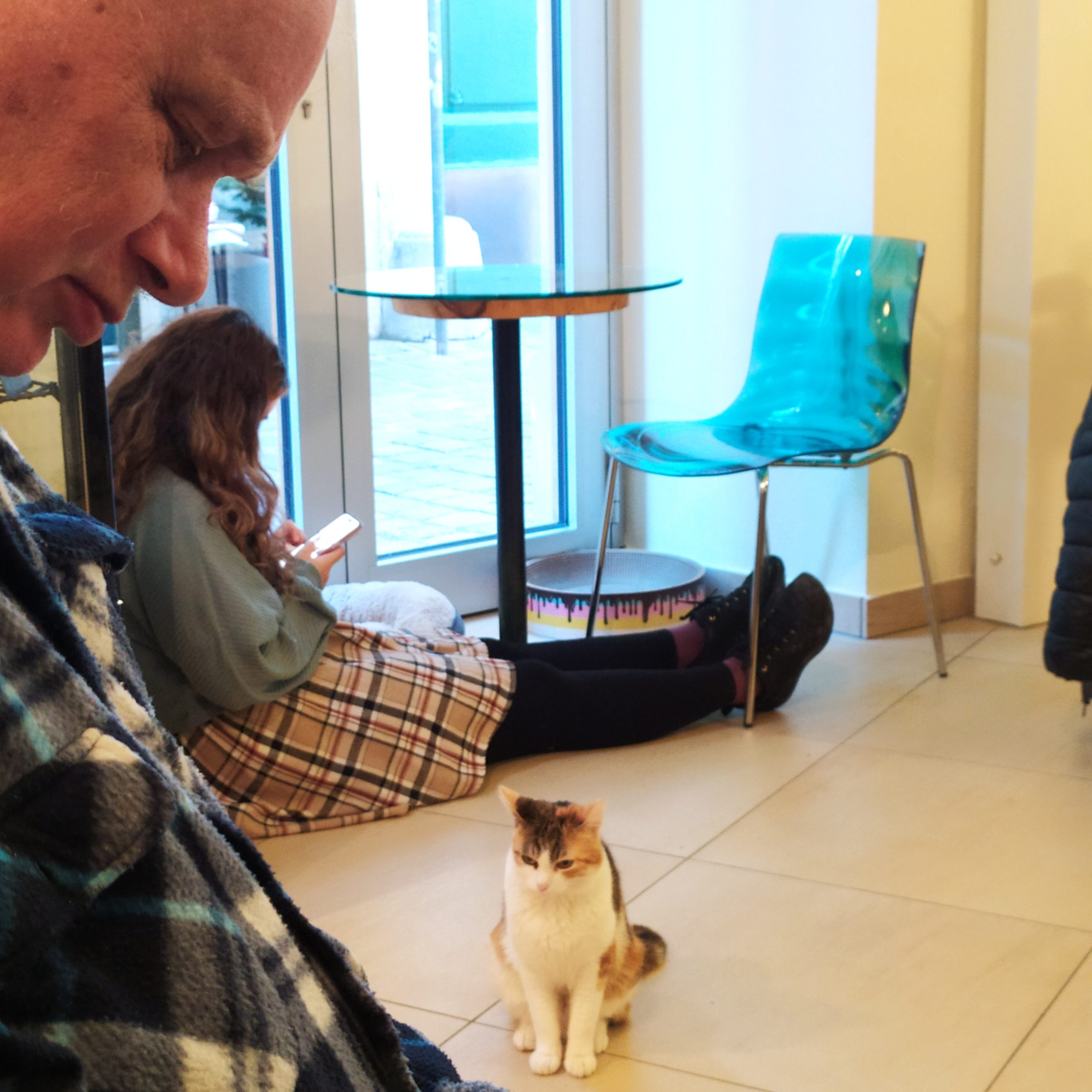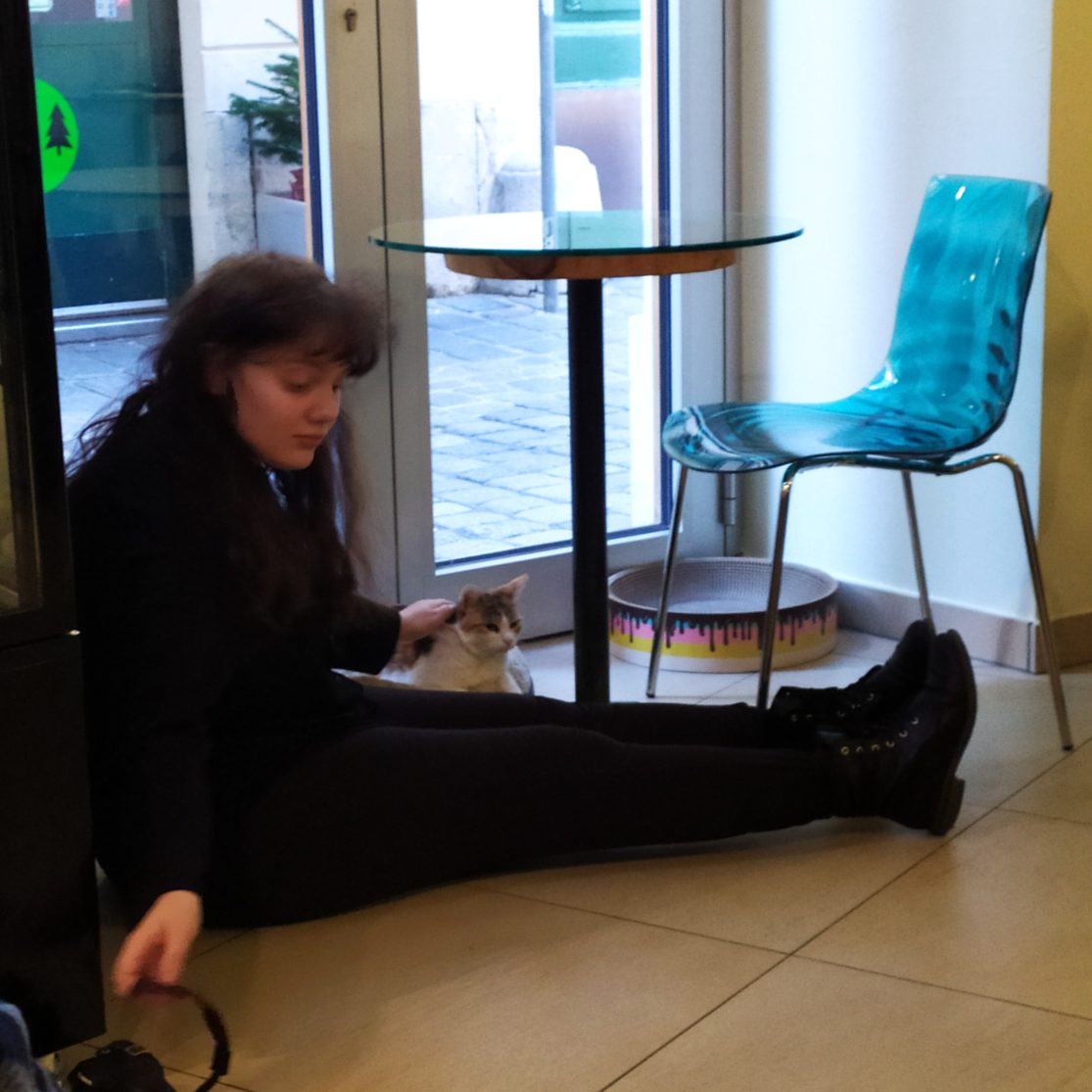 Am Dienstag, 18.11.25 ist die Textilgruppe zum Katzenkaffee im Ersten Bezirk am Stephansplatz gegangen. Wir haben mit den Katzen gespielt und sie gestreichelt. Es waren Cosma, Markus, Joana, Robert, Philipp, ich und unsere Betreuerin Eva dabei.
